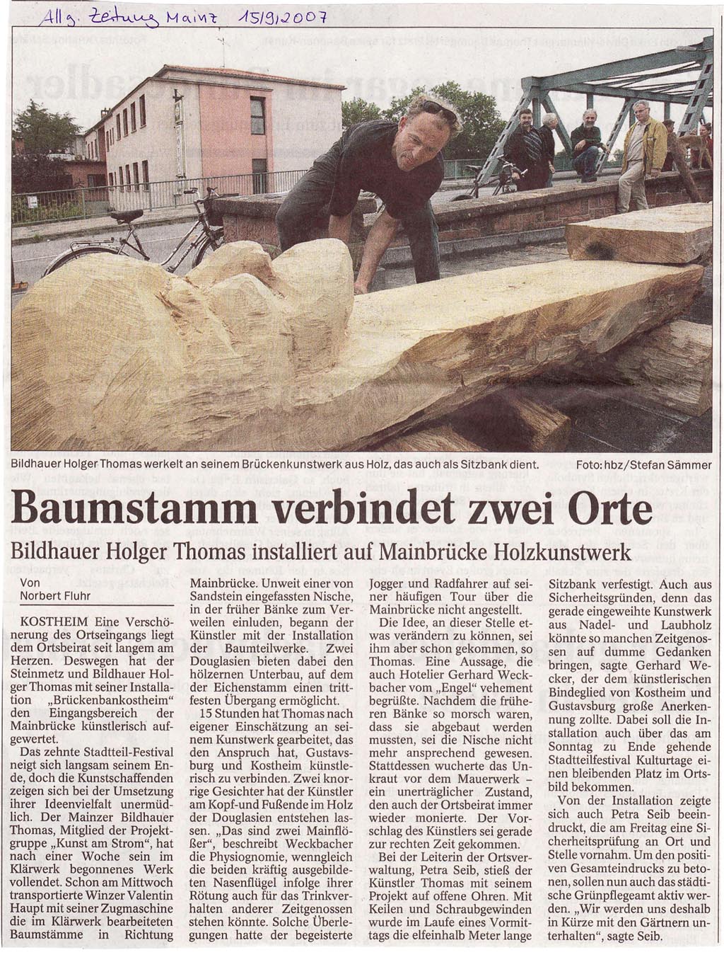 Baumstamm verbindet zwei Orte Allgemeine-Zeitung 15.09.2007